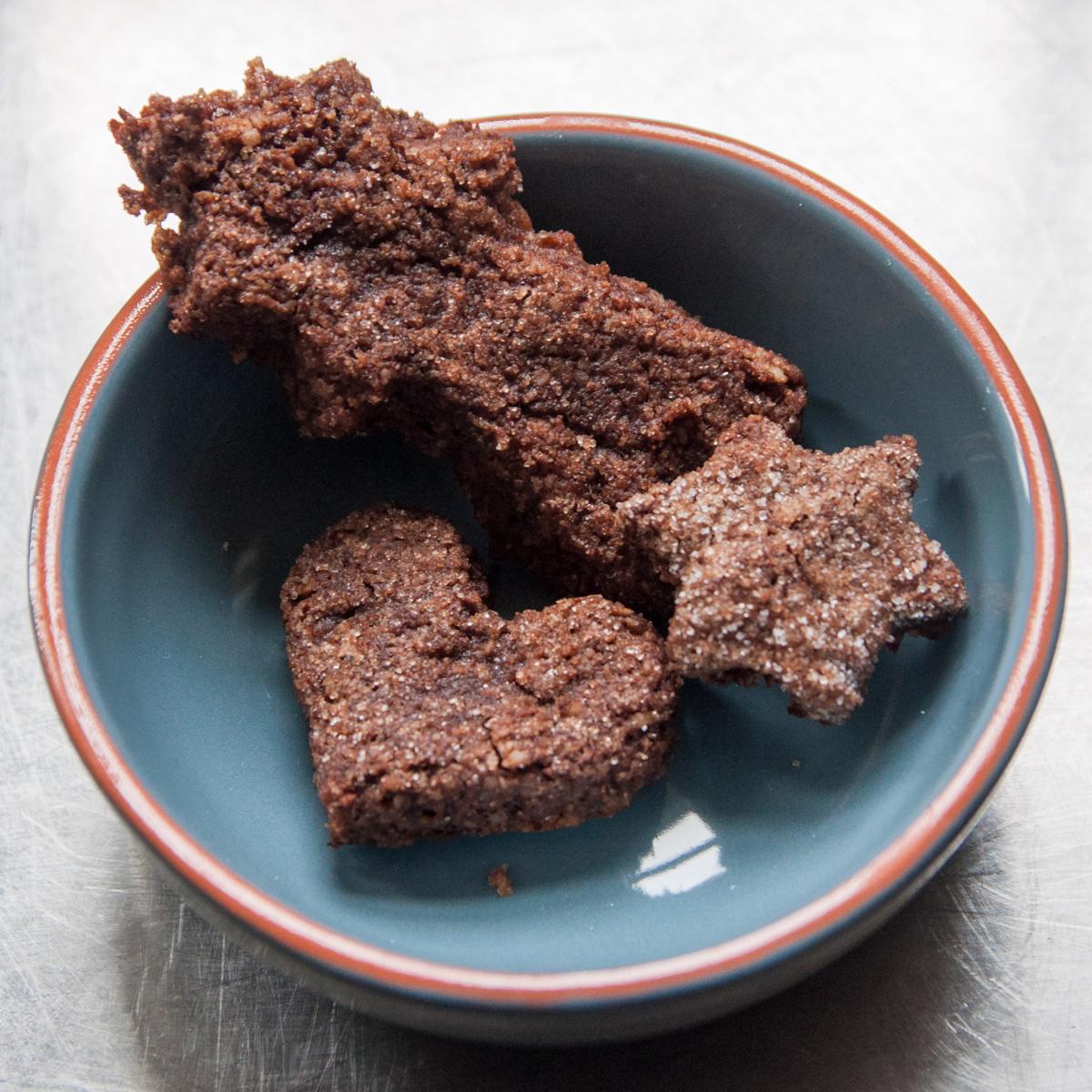 - Mix ground almonds, sugar, cocoa powder, flour and the cinnamon together in a bowl